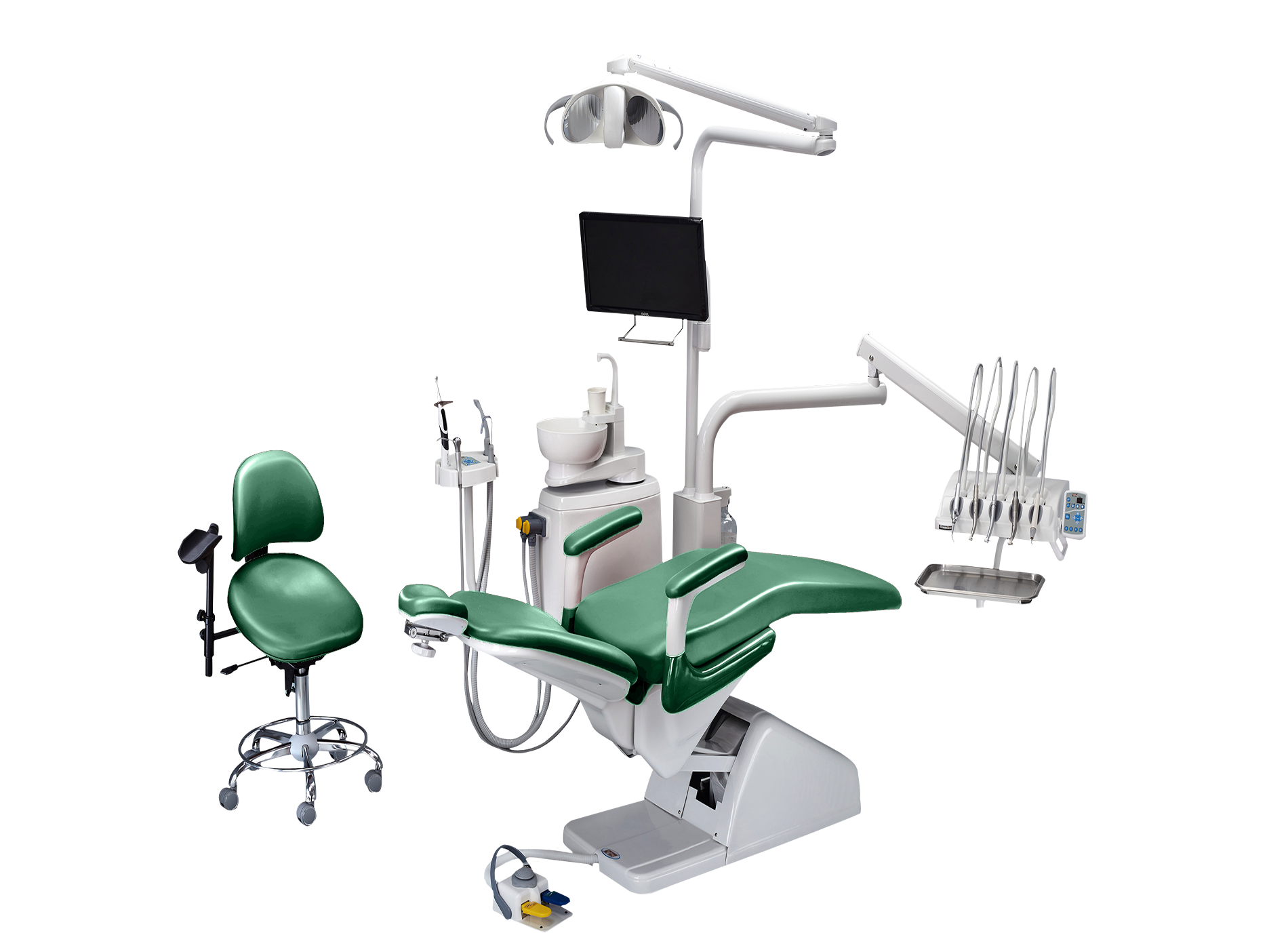 - Manually operated over-patient delivery system — ergonomic access to instruments and handpieces